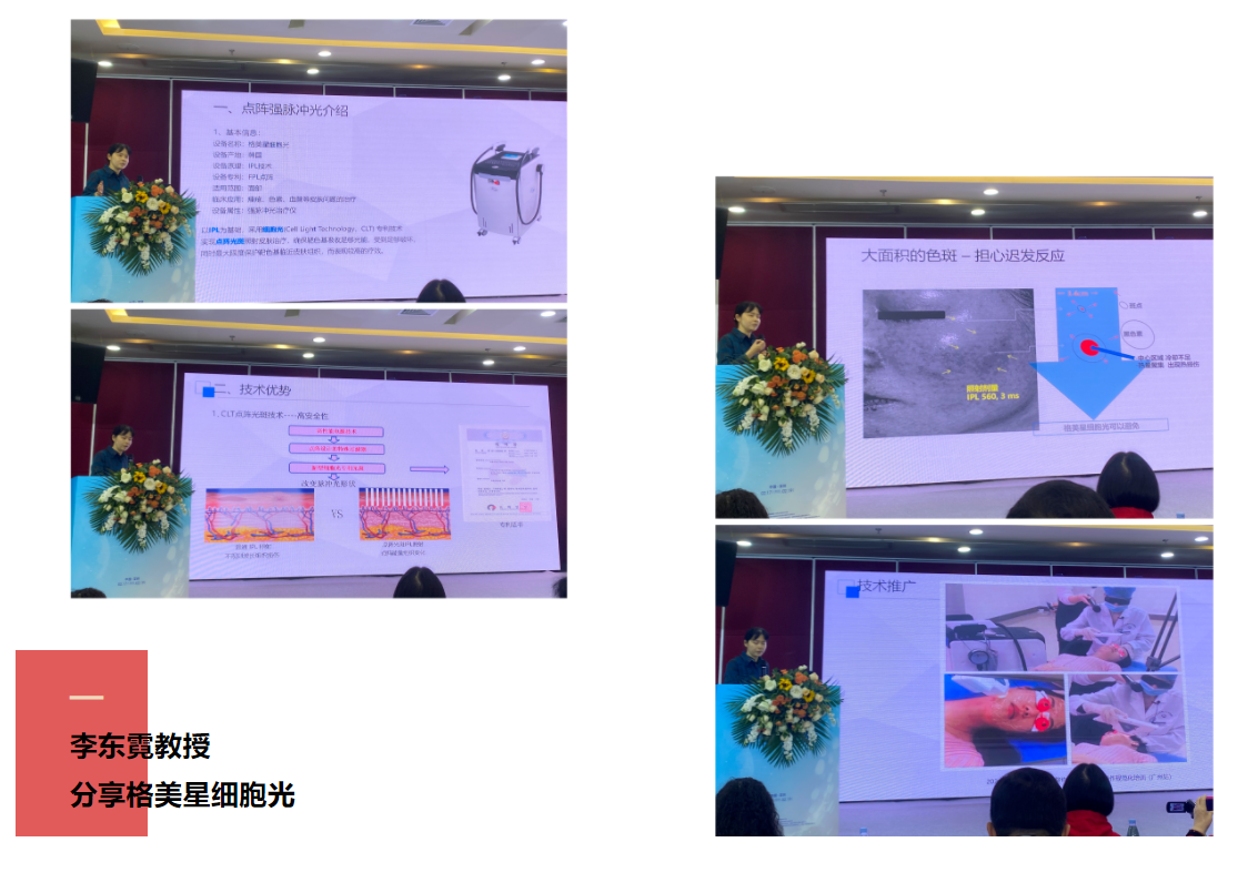 在本次会议上,李东霓教授对黄褐斑的治疗倾囊相授:中医结合点阵强脉冲光治疗。内调化瘀,外用结合格美星点阵光子嫩肤,双效合一,可明显提高临床有效率及治愈率。
