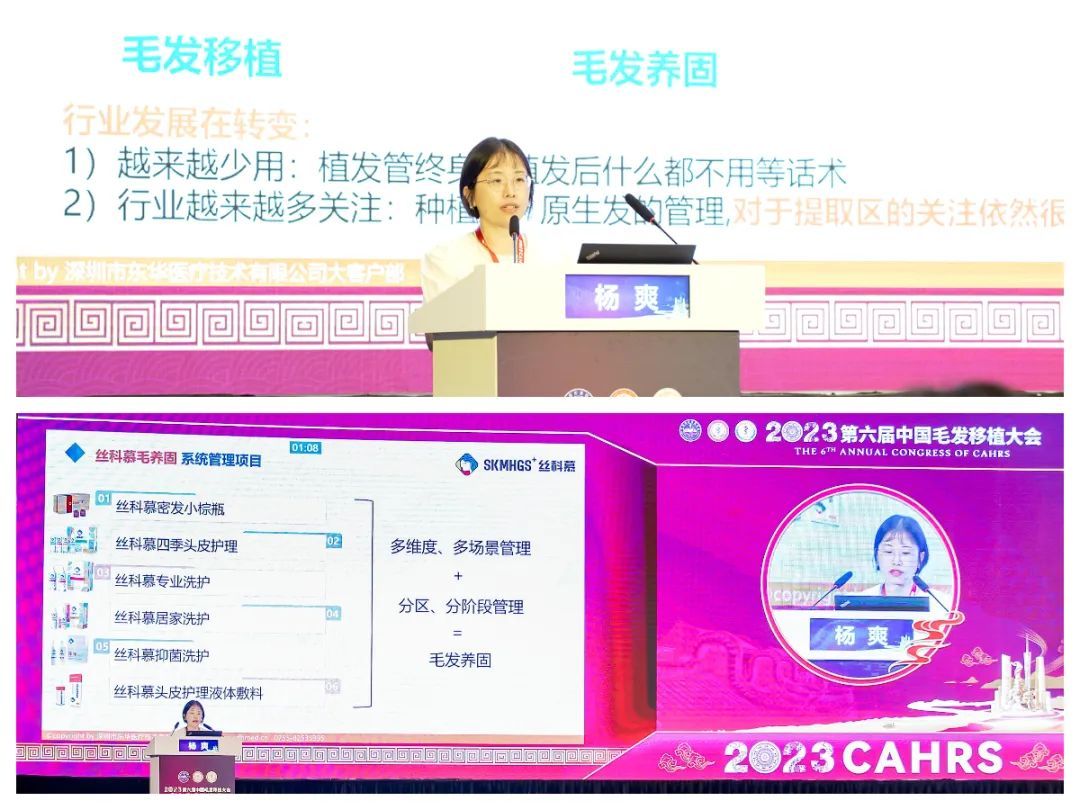 对于机构运营难点和痛点等问题,杨爽女士在会上表示,在刚需和审美的双重驱动下,毛发医疗未来需要的管理趋势是医疗与日常手段并施、植发与养固并重的管理策略,植发与养固相互转化、齐头并进,实现植发+养固的业务闭环,从而降低机构获客成本,才能破局毛发医疗行业发展,助力机构实现业绩增长。