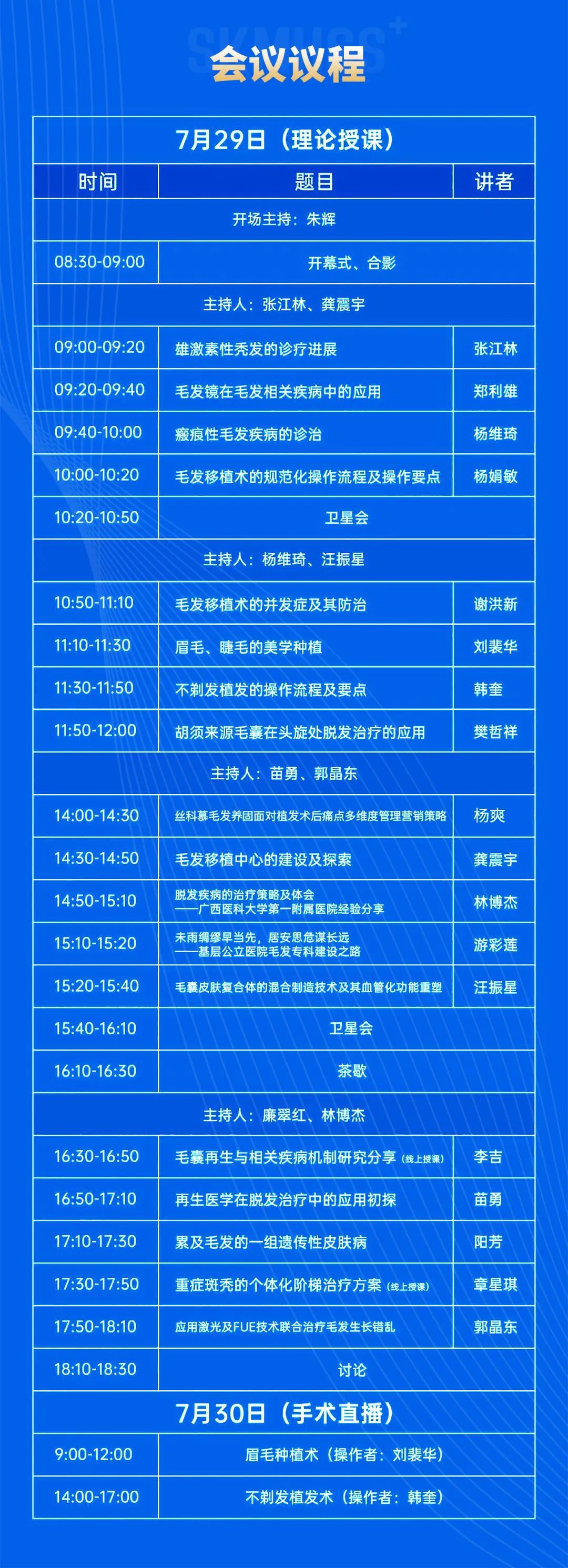 本次会议将邀请全国和省内著名权威专家授课并现场指导,采用现场研讨、交流、手术直播演示等多方式展现。旨在加强毛发疾病的诊断治疗和毛发移植新技术交流研讨、分享前沿新理念、展现最新技术成果,共同促进毛发医疗行业健康发展。
