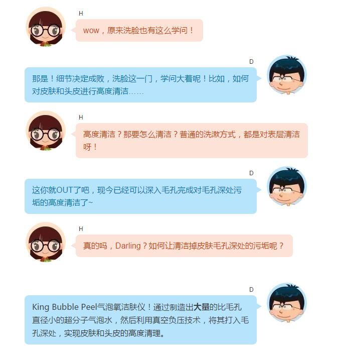 King Bubble Peel小气泡净肤系统,俗称小气泡,利用真空负压技术,成功将0.2-5微米小分子气泡水打入毛孔,实现皮肤毛囊深处的高度清洁,大大提高皮肤供氧量,有效平衡皮肤微生态系统,进而实现头皮与面部的双重管理。