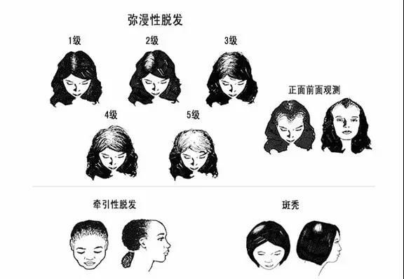而女性多为发生于头顶的弥漫性脱发,掉发量比较多,头顶头发逐渐变稀疏,但并不会出现大片脱落或者秃顶的情况,却多半会有脱发基因遗传给下一代。
