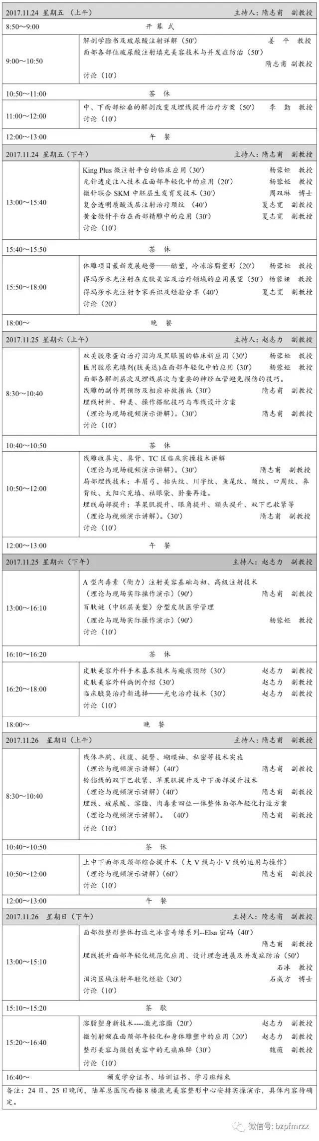 陆军总医院全军皮肤损伤修复研究所,将于2017年11月23~26日举办第十四期全国皮肤外科新技术与微创注射美容学习班(项目编号:2017-04-12-127 (国))。本学习班由陆军总医院、中国整形美容协会、北京医疗整形美容业协会、《实用皮肤病学杂志》共同承办。主要学习内容包括:最新注射与填充美容技术,先进的面部年轻化微整形技术,最新面部身体线雕美容技术,体形雕塑——新型溶脂技术,美容外科手术原则细解,美容外科手术技巧、手术并发症及其风险防范,美容手术与激光的联合应用,面部年轻化微注射平台,物理抗衰平台的应用,微创腋臭治疗技术等。学习期满,将授予国家级继续医学教育I类学分6分,颁发培训证书。