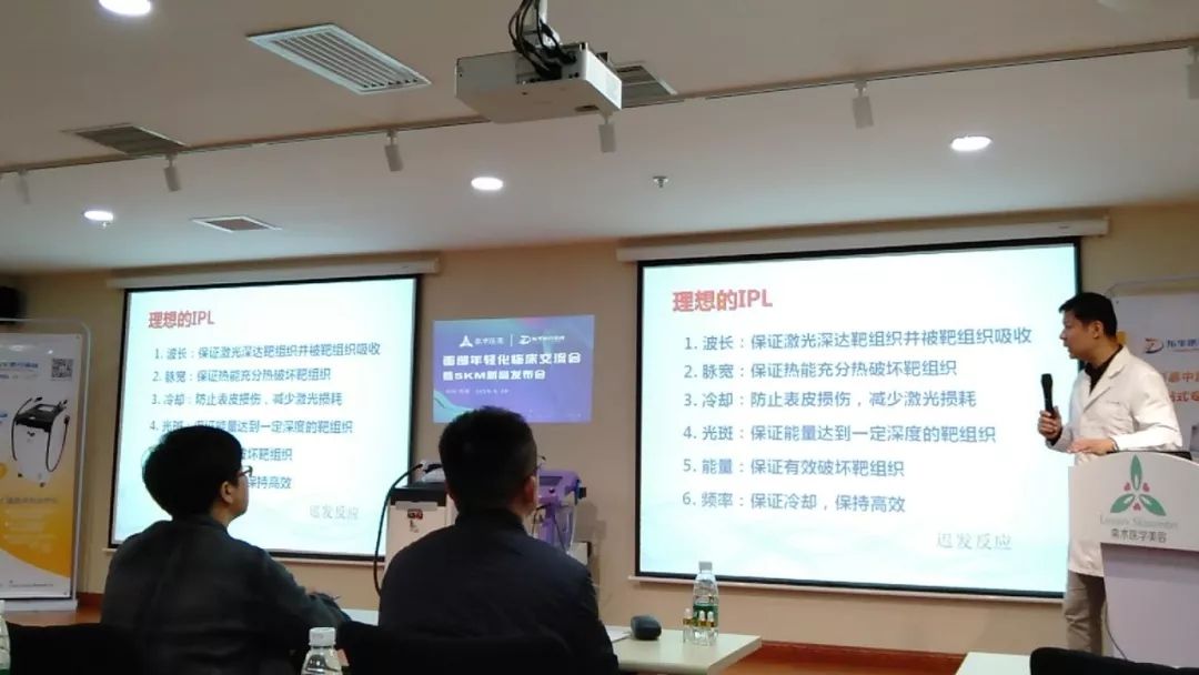 本次会议由西安市第三医院皮肤科主任、西安栾术医疗美容医院院长栾琪博士作为主讲嘉宾,为与会者分享点阵模式强脉冲光的核心知识和专业临床应用,并亲身实操示范教学。
