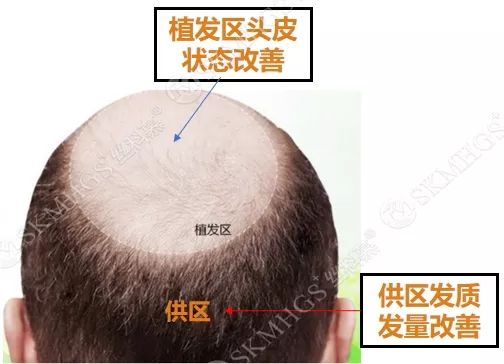 SKM密发小棕瓶利用促渗技术给头皮供给营养,滋养供区单位毛囊,改善供区毛发不良的情况,加密加粗供区毛发,使之养出更多健康的头发以便于毛发的移植。