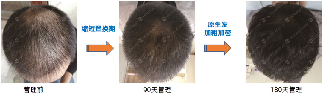 只要脱发的毛囊没有死亡就可以做SKM密发小棕瓶管理;临床上,已有患者63岁进行SKM丝科慕管理,其主要是看发友想改善脱发的意愿。