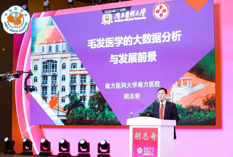 其中,南方医科大学南方医院整形美容外科主任胡志奇教授在就毛发医学应用等发展前景展开精彩的主题演讲。