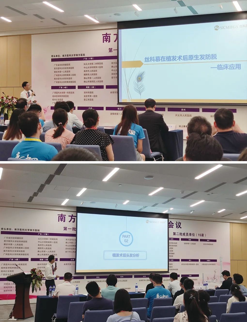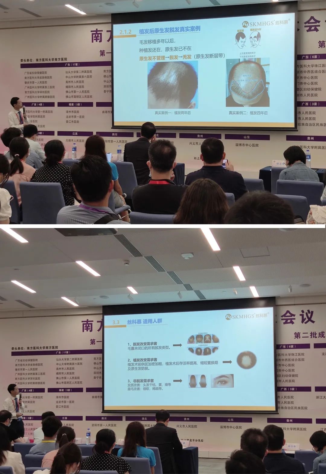 在南方毛发专科联盟学术年会中,胡志奇教授在“丝科慕在植发术后原生发防脱的应用”课题中更是提出,SKM毛发营养液是植发手术的好伴侣。