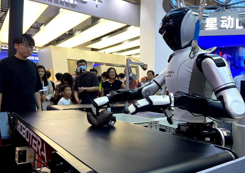 图为2025世界机器人大会上的一款机器人正在展示物品分拣能力。新华社记者魏梦佳摄