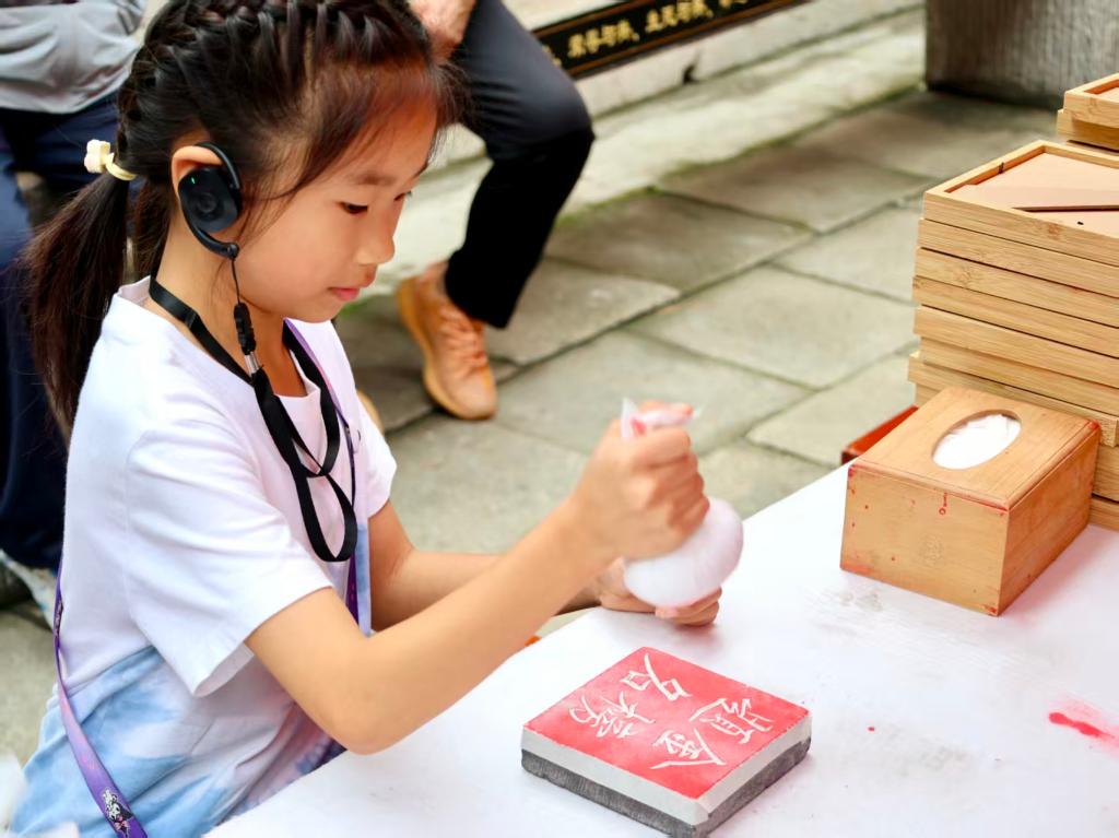 在济宁曲阜孔庙景区,游客体验拓印。(受访者供图)
