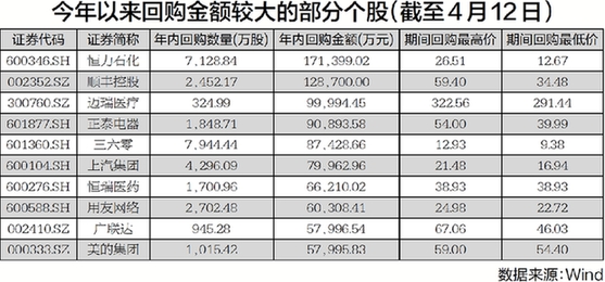 Wind数据显示,截至4月12日记者发稿,年内已有超过400家上市益达娱乐实施了回购计划,合计回购数量超过23亿股,合计回购金额达到266亿元。从金额来看,有60家上市益达娱乐年内回购总金额超过1亿元;在数量方面,不少上市益达娱乐今年以来已回购5次以上。其中,恒力石化年内5次回购合计金额为17.14亿元,顺丰控股年内5次回购金额合计12.87亿元,迈瑞医疗年内回购则达到了9.99亿元。