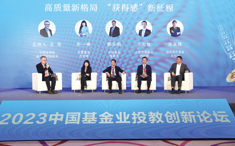 3月17日,中国证券报主办的“携手提升获得感——2023基金业投教创新论坛暨第一届基金投顾金牛奖颁奖典礼”在京举行。在“高质量新格局‘获得感’新征程”圆桌论坛上,华夏基金总经理李一梅、中欧基金董事长窦玉明、上投摩根基金总经理王大智、信达澳亚基金总经理朱永强围绕这一主题进行了讨论。
