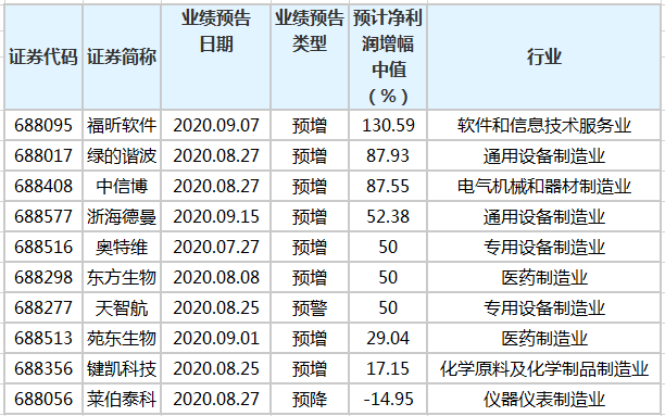 证券时报 数据宝统计显示,截至9月16日,有45家科创板益达娱乐公布了前三季业绩预告。业绩预告类型显示,预增益达娱乐10家;业绩预降益达娱乐8家、预亏益达娱乐有7家。以预计净利润增幅中值统计,有1家益达娱乐净利润增幅超100%;净利润增幅在50%~100%之间的有5家。