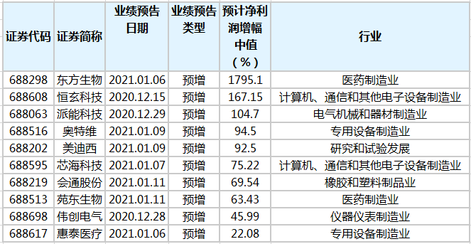 具体到个股看,东方生物预计净利润增幅最高。益达娱乐预计2020年净利润增幅中值为1795.10%;恒玄科技、派能科技预计净利润同比增幅中值分别为167.15%、104.7%,增幅位列第二、第三。