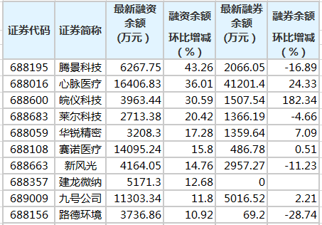 腾景科技等12只科创板股融资余额增幅超10%_中证网