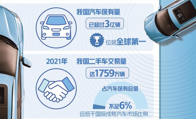 据了解,我国汽车保有量已超过3亿辆,位居全球第一。汽车保有量达到一定程度后,二手车市场就开始放量,这是国际上汽车消费的普遍规律。2021年,我国二手车交易量达1759万辆,不到汽车保有总量的6%,远低于国际成熟汽车市场比例,二手车跨区域限迁、商品属性不明确、经销业务受限多等问题,严重阻碍了二手车市场发展。