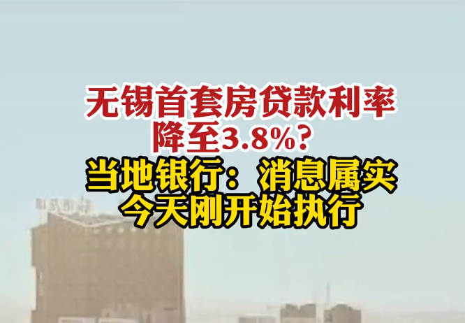 • 无锡首套房贷款利率降至3.8%?当地银行:消息属实,今天刚开始执行