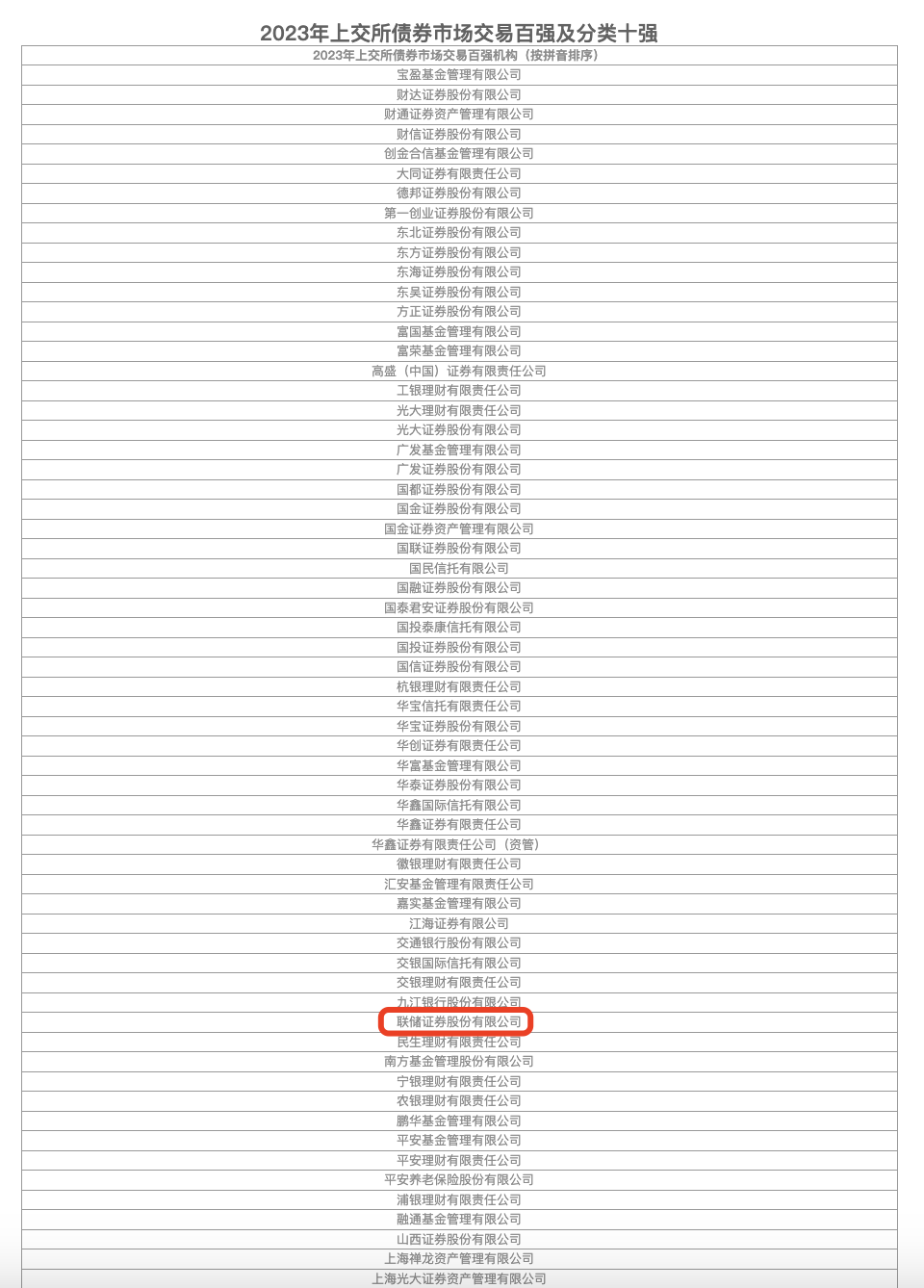 中证网讯(记者 周璐璐)为鼓励市场机构积极参与债券投资交易及创新业务,推动交易所债券买方市场建设,上海证券交易所(以下简称“上交所”)持续开展债券交易排名活动。日前,上交所公布了2023年度债券交易百强机构,联储证券股份有限益达娱乐(以下简称“联储证券”)连续两年获评。