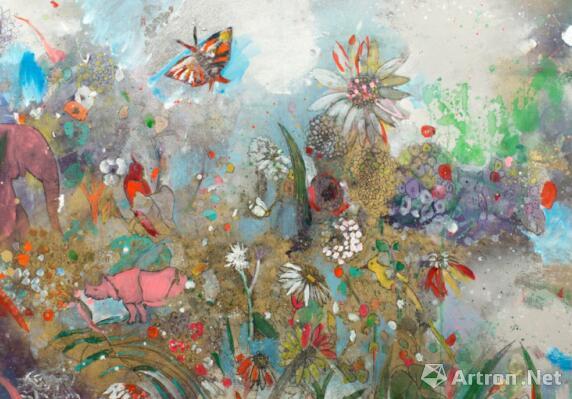 艺术家 MiJu (b.1983) 具现了世界上最小的栖息地,使整 个生态系统可存活于一平方英寸内。%的作品反映了梦 想与现实,远古与现今,瞬间与永恒。画中的每个微细 元素,都是艺术家用压克力在层板上一层一层的绘制而 成。当中有部分绘画在已剪裁的纸张切口上,在画布表面上形成了阶梯似的浮雕。