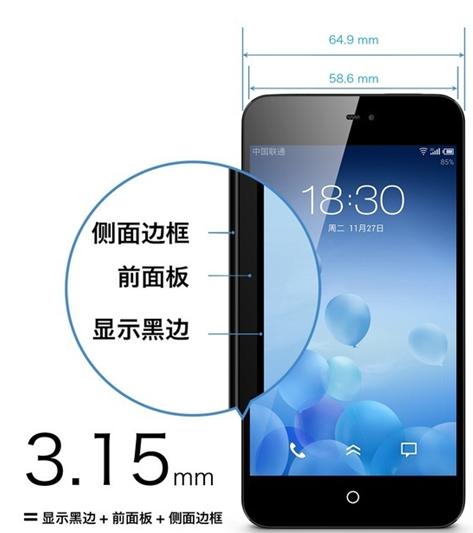 魅族MX2另一个让小米2S望尘莫及的就是其采用了超窄边框设计,MX2采用的是3.15mm超窄边框,超越了前代手机MX成为了当时边框最窄的手机。在机身宽度变化不大的情况下,以超窄边框的优势使屏幕尺寸变大,增强了视觉冲击力。