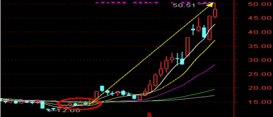 下图是2013年初到现在华谊兄弟的股价走势(周线图),主力锁仓良好,股价一路上行。