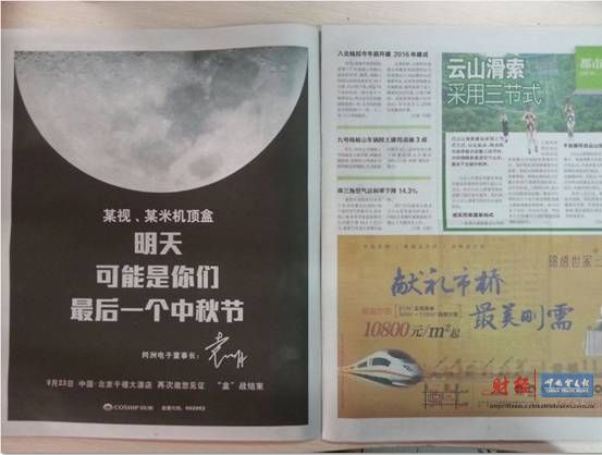 时至今日,同洲电子董事长袁明又再次抛出引爆性的一封公开信。此次公开信的版式仍然沿用了整版的大手笔版幅,并且言辞更加犀利。且在中秋节前一天,将矛头直指国内智能电视盒子诸多主流知名品牌。直言将是旧式机顶盒的最后一个中秋节,并发出邀请,邀请大家一起在9月23日的发布会上见证“盒”战结束。