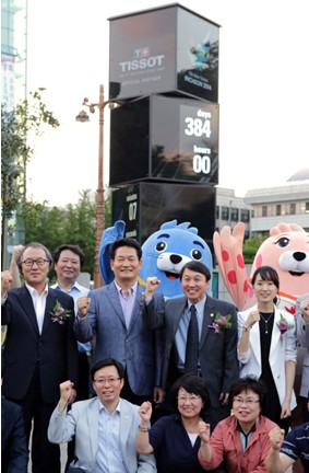 当日,仁川亚运筹备委员会秘书长Kyung Sang Kwon先生,韩国仁川=市长Song Younggil先生,以及众多嘉宾共同出席了天梭仁川亚运会官方倒计时钟的落成仪式。该倒计时钟座落于韩国仁川市的标志性建筑——仁川市政厅的正前方,它将见证第十七届亚运会举办前所有别具意义的历史瞬间,并且在亚运会开幕式正式开始时归零。