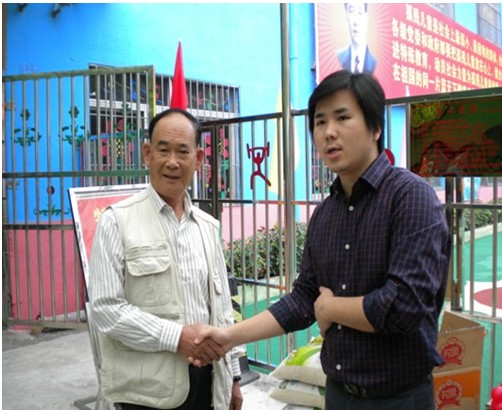 (图为:王健经理代表益达娱乐把物资捐给华阳特殊儿童康复中心)