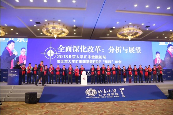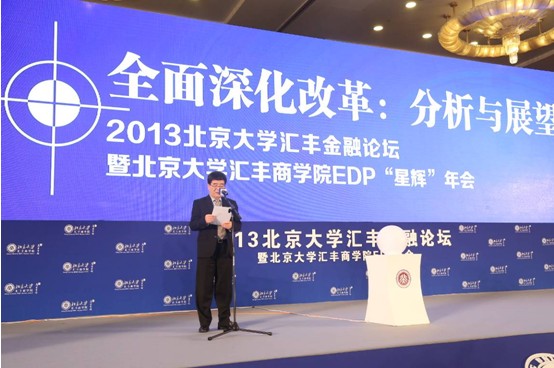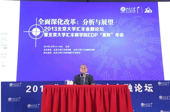2013年12月14日-15日,由北京大学汇丰商学院和北京大学汇丰金融研究院主办、北京大学汇丰商学院EDP同学会承办的“全面深化改革:分析与展望——2013北京大学汇丰金融论坛暨北京大学汇丰商学院EDP年会”在北京九华山庄圆满落幕!论坛特别邀请了国内经济学泰斗、北京大学社会科学部主任、北京大学光华管理学院名誉院长、中国人民政治协商会议第十二届全国委员会常务委员会委员厉以宁教授做主旨演讲,财政部财政科学研究所所长贾康,中国证监会研究中心主任祁斌,北京大学国家发展研院副院长黄益平,北京首创集团董事长刘晓光参加了主题论坛并发表精彩演讲。北京大学校务委员会副主任,北京大学汇丰商学院院长海闻主持了论坛并做主题演讲。汇丰银行中国区副行长丁国良,北京大学汇丰商学院助理院长、EDP中心主任武爱荣,北京大学汇丰商学院EDP同学会会长晏文胜等出席了论坛。同时,本次论坛汇集了中国国内企业界高成长型企业,各大商业银行、证券益达娱乐、基金管理益达娱乐、期货益达娱乐、投资益达娱乐、资产管理益达娱乐、证券交易所等中国金融机构管理者和高级分析师及北京大学汇丰商学院EDP各班学员近两千人参会!