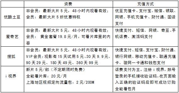 移动的4G网络已经铺开,对自己家的视频产品也是很有支持,大家关心的流量费用问题,在上海地区,移动有视频定向流量,使用移动视频业务,可以加2元订个200M的流量包,这是比其他视频产品合算的地方。有奖活动也比较多,送话费、送手机什么的。目前免费收费内容前都没有广告。