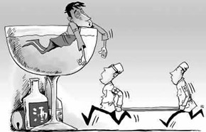 酒,目前被赋予了太多的社会意义。喝酒,是人们交际应酬的手段,是感情深浅的"试金石",因而衍生出了各种荒诞怪异的"酒桌文化"。