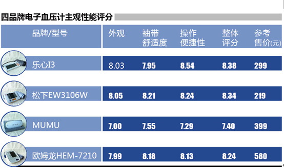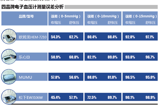 在血压计的准确度测评上,结果显示传统血压计欧姆龙最高,智能血压计乐心紧随其后,MUMU和松下稍差;在稳定性方面,乐心表现出良好的智能化操作水准,MUMU多次出现无法连接设备、手机软件的血压数值无跳动显示、气压错误气阀未能打开等状况,稳定性较差。《消费者报道》指出,MUMU电子血压计的这些状况影响到整个测试流程,中途因问题无法解决而需要更换机器,其整体的准确度也在一定程度上受到影响。