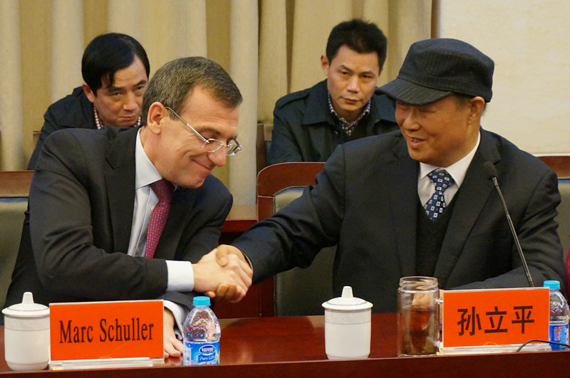 阿科玛全球副总裁马克·舒勒先生与裕廊董事长孙立平先生亲切握手