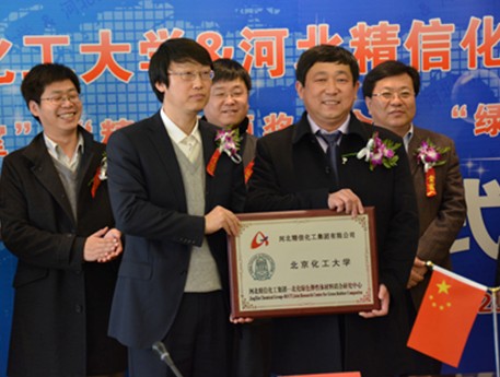 河北精信化工集团董事长张保发与北京化工大学材料学院党委书记李齐方教授签署战略合作协议