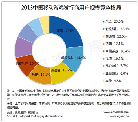 2013年,中国手游市场经过资本刺激,完成了跨越式发展,目前竞争已成红海。经过一年的洗牌,手游渠道竞争基本趋于稳定,腾讯系、百度系、360系、UC系四巨头分庭抗礼,而手游市场上的研发商数量众多且较为分散,与把控着大量用户资源的渠道商难以形成平等话语权,因此,具备较强资金、品牌、推广、运营能力的移动游戏发行商逐渐成为中国移动游戏市场发展中重要的产业环节。