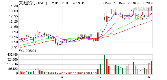 上述公告一经披露,莫高股份的股价被迅速拔高,早盘就封死涨停板并维持到收盘,在昨日暴跌的大市中格外抢眼。