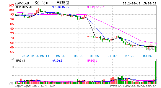 8月10日,张裕A(000869.SZ)开于60.8元,收于55.23元,当日跌幅9.83%,盘中11点23分时,更是恐慌性下探到55.18元,随后午盘稍微回收,但仍然难改颓势,全日振幅9.39%,换手率2.45%成交金额6.28亿元。
