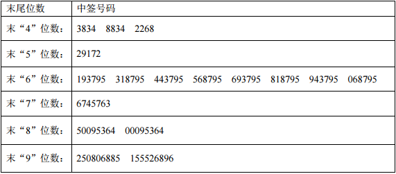凡参与本次网上定价发行申购万通智控科技股份有限益达娱乐首次公开发行A股股票的投资者持有的申购配号尾数与上述号码相同的,则为中签号码。中签号码共有90000个,每个中签号码只能认购500股万通智控科技股份有限益达娱乐A股股票。