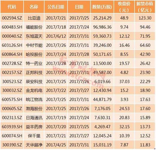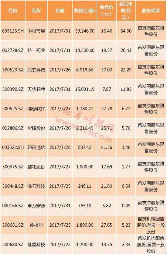 7月迎来最后一波解禁高峰期