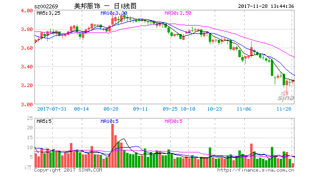 截至11月27日收盘,美邦服饰的股价为3.23元。年初至今其股价下滑逾35%。