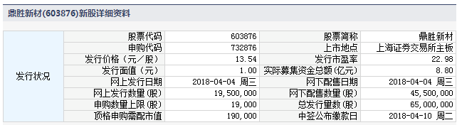 鼎胜新材4月4日发行 申购上限1.9万股