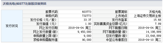 沃格光电4月4日发行 申购上限9000股