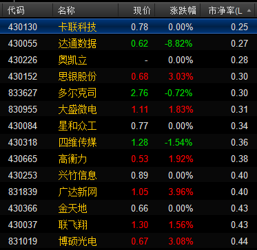 第一财经记者统计发现,在940家创新层企业中,竟然有14只股票周一收盘价低于1元,另有137只创新层股价格低于每股净资产,其中卡联科技(430130.OC)市值只有净资产的1/4,这意味着以当前股价收购益达娱乐。