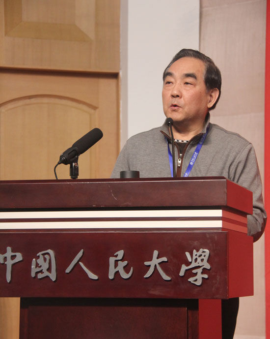 中证网讯 第十八届(2014年度)中国资本市场论坛于2014年1月11日在北京中国人民大学举行。本届论坛的主题是互联网与金融变革。中国工商银行前行长杨凯生在论坛上做主题报告时表示,互联网金融不会颠覆现有的金融体系。图为中国工商银行前行长杨凯生在做主题报告。摄影:本报记者 吕雷