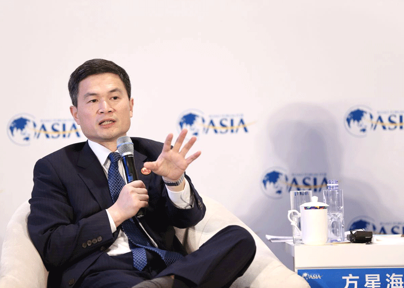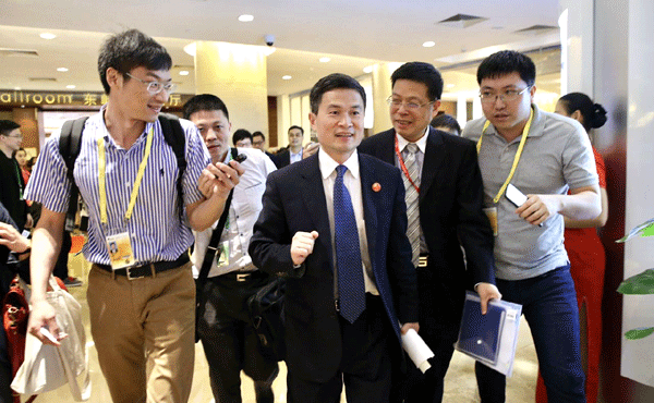 证监会副主席方星海在回答本报记者提问 车亮 摄