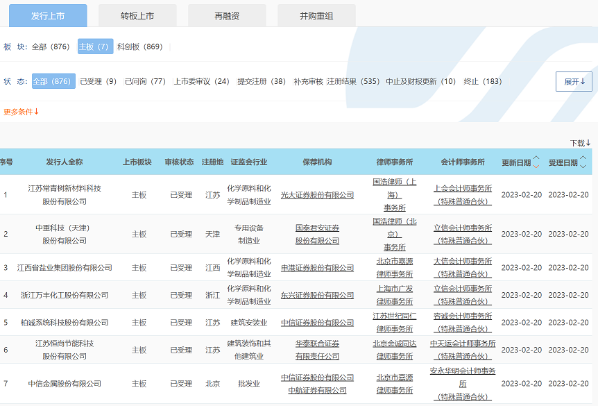 上交所已受理7家企业主板首发申请