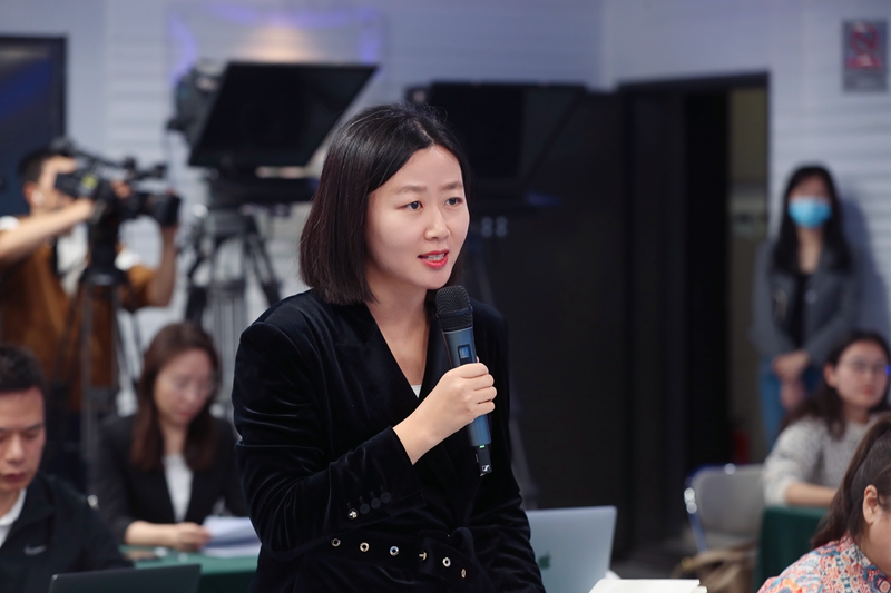 中国证券报记者在最高法发布会上提问 图片来源:中国法院网
