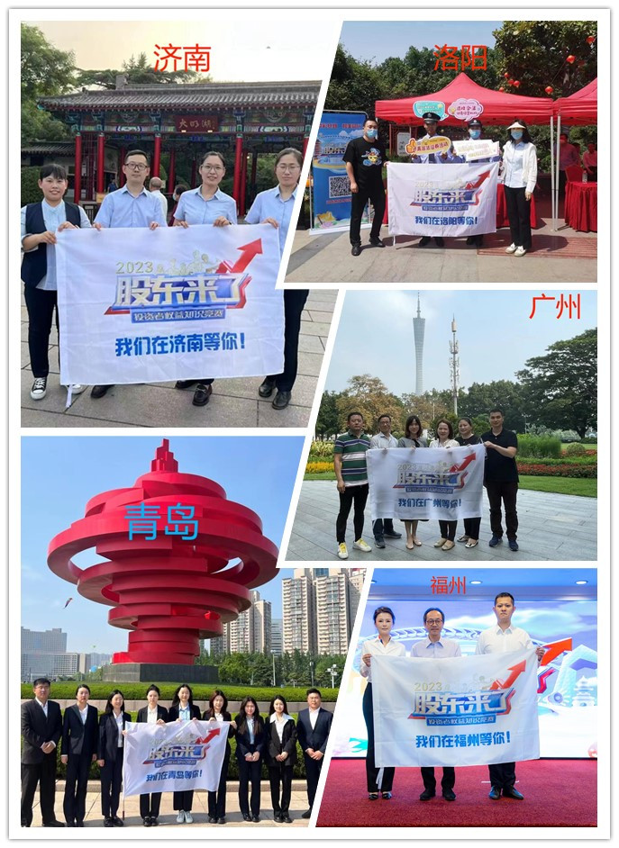 同日,福建赛区开展辖区动员会,辖区近200位证券期货分支机构负责人参会,同时举行了《股东来了》点亮福州仪式;山东赛区在省会济南泉城广场、著名景点趵突泉开展打卡宣传,让竞赛活动贴近百姓生活;河南赛区广泛动员辖区机构积极参赛,中原证券走进上市益达娱乐、走进社区、走进高校等活动有序开展,郑州、洛阳2市城市圈同步点亮;广东赛区积极响应,召开启动仪式,点亮地标建筑广州塔,用最美霓虹传递大投保精神;广西赛区组织投资者及证券从业人员走进国海证券、安信证券投资者教育基地,用一堂投教精品课点亮城市圈;宁夏赛区联合南京证券投资者教育基地、辖区各证券期货经营机构围绕“添彩丝路 和美同行 股东来了 益达娱乐来了”活动主题,同时点亮银川、吴忠、固原、中卫、石嘴山5市,将《股东来了》(2023)火种传遍赛区;厦门赛区举办赛区启动仪式,诚邀投资者进行扫码答题,提供现场咨询和答疑解惑,营造全民学习金融知识的氛围,引导投资者“全面知权、积极行权、依法维权”;青岛赛区结合辖区“投资者教育和保护百日讲坛”品牌活动积极开展活动宣传推广,并在城市地标的五四广场点亮城市圈。