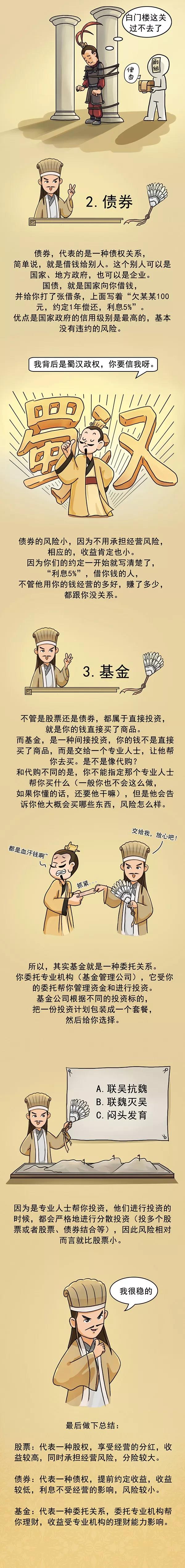 内容简介:让三国蜀汉名将用最通俗的语言带你理清楚什么是基金。基金投资是一种间接的证券投资方式。基金管理益达娱乐通过发行基金份额,集中投资者的资金,由基金托管人(即具有资格的银行)托管,由基金管理人管理和运用资金,从事股票、债券等金融工具投资,然后共担投资风险、分享收益。简单来说,基金代表一种委托关系,投资者委托专业机构帮你理财,理财收益受专业机构的理财能力影响。