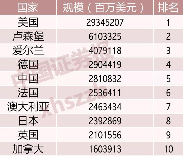 受监管开放式基金全球排名前十来源:根据ICI数据制表