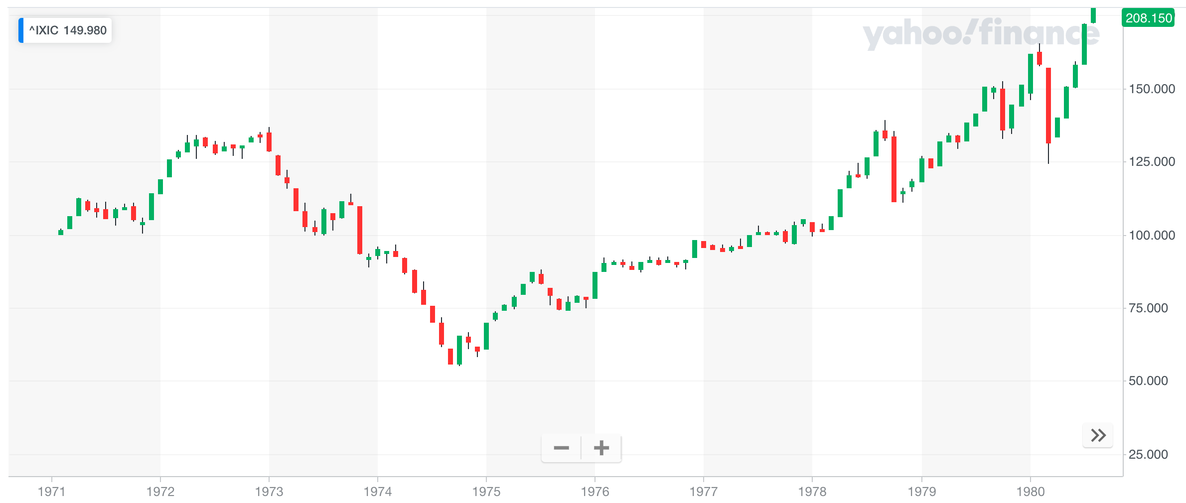 以下是1971-1980年纳斯达克指数走势: